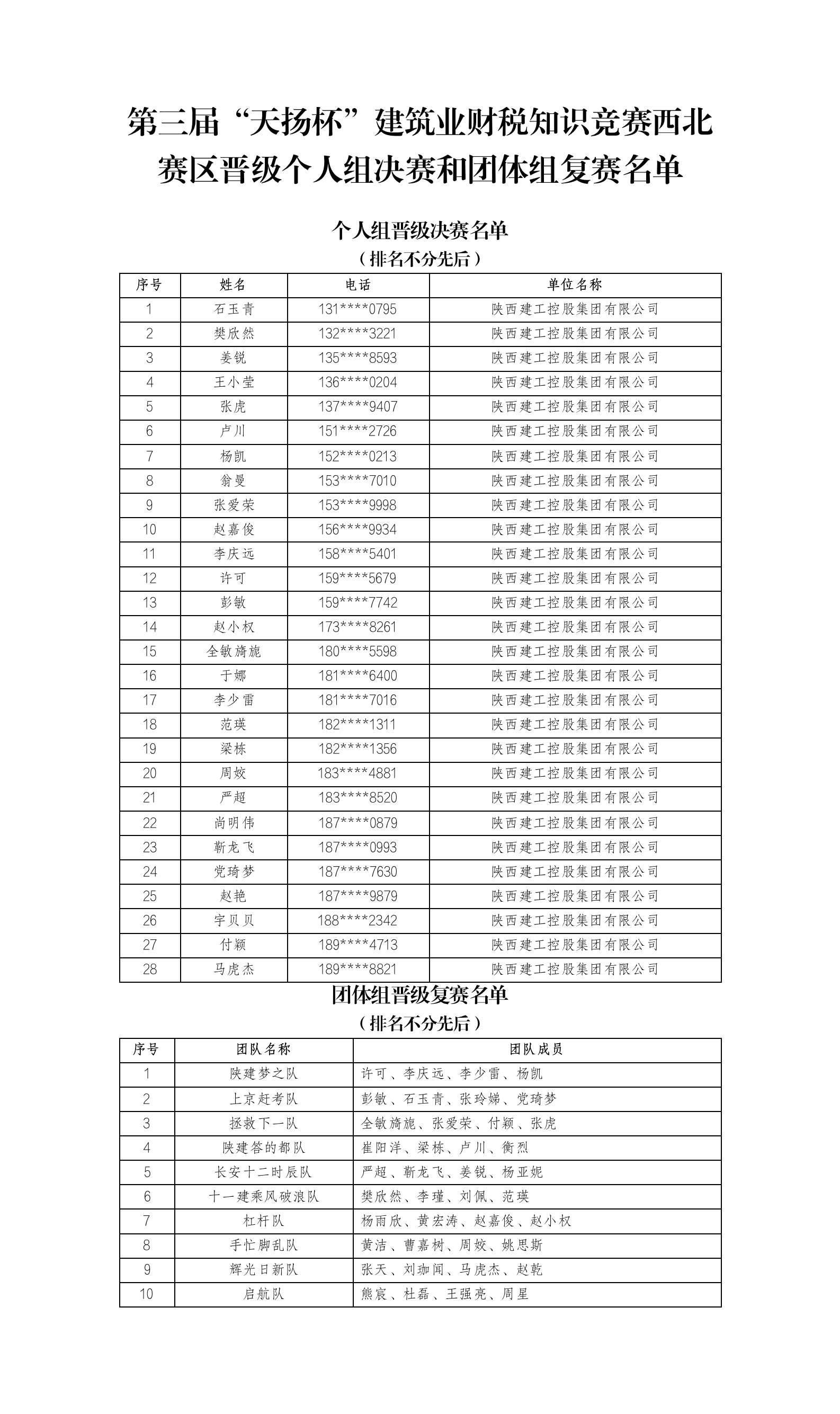 2. 第三届“天扬杯”建筑业财税知识竞赛晋级个人组决赛和团体组复赛名单