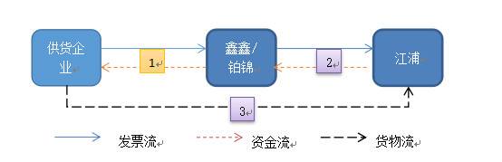 刘某2012年2月21日在六安市经济技术开发区成立了六安鑫鑫石油化工产品销售有限公司(以下简称“鑫鑫公司”,于2013年3月注销),2013年1月24日在六安市经济技术开发区注册成立了六安铂锦石油化工产品销售公司(以下简称“铂锦公司”)。鑫鑫公司、铂锦公司与江浦公司“合作”,由江浦公司联系销售甲基叔丁基醚、混合芳茎、二甲苯、碳五、碳九等化工产品的供货企业,供货企业再与鑫鑫公司、铂锦公司签订购货合同,而后江浦公司提供购货资金给鑫鑫公司、铂锦公司,通过鑫鑫公司、铂锦公司将购货资金支付给供货企业,供货企业收到货款后由江浦公司安排运输工具到供货企业提货或由供货企业直接将货物运输到江浦公司指定的地点。交易完成后,供货企业为鑫鑫公司、铂锦公司开具货款一致的增值税专用发票,鑫鑫公司、铂锦公司收到发票后再按每吨50元至70元不等的标准加价后,为江浦公司开具货物名称为汽油及柴油的增值税专用发票。相关的业务流程如下: