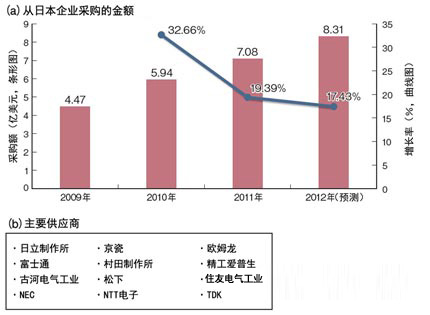 实际上,最近数年与日本企业之间的业务在迅速增加。2009年的采购额约为4.47亿美元,而2012年将达到8.31亿美元(华为的预测),几乎会翻一番(图3)。