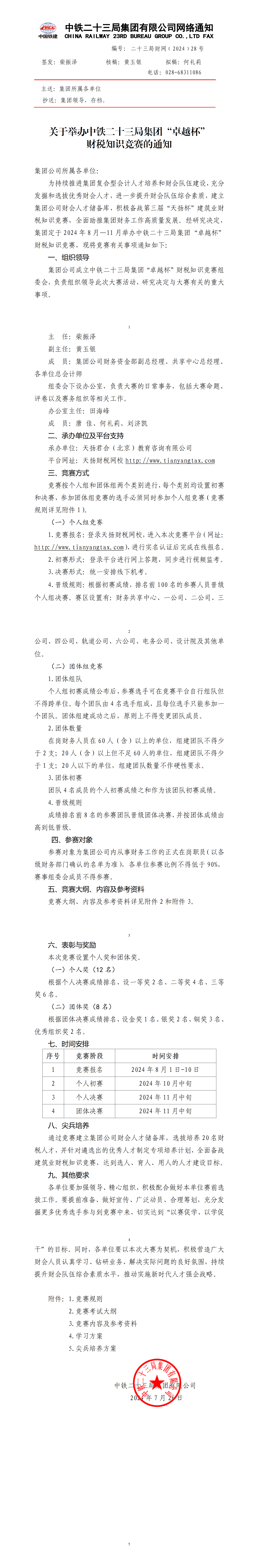 【竞赛通知】关于举办中铁二十三局“卓越杯”财税知识竞赛的通知