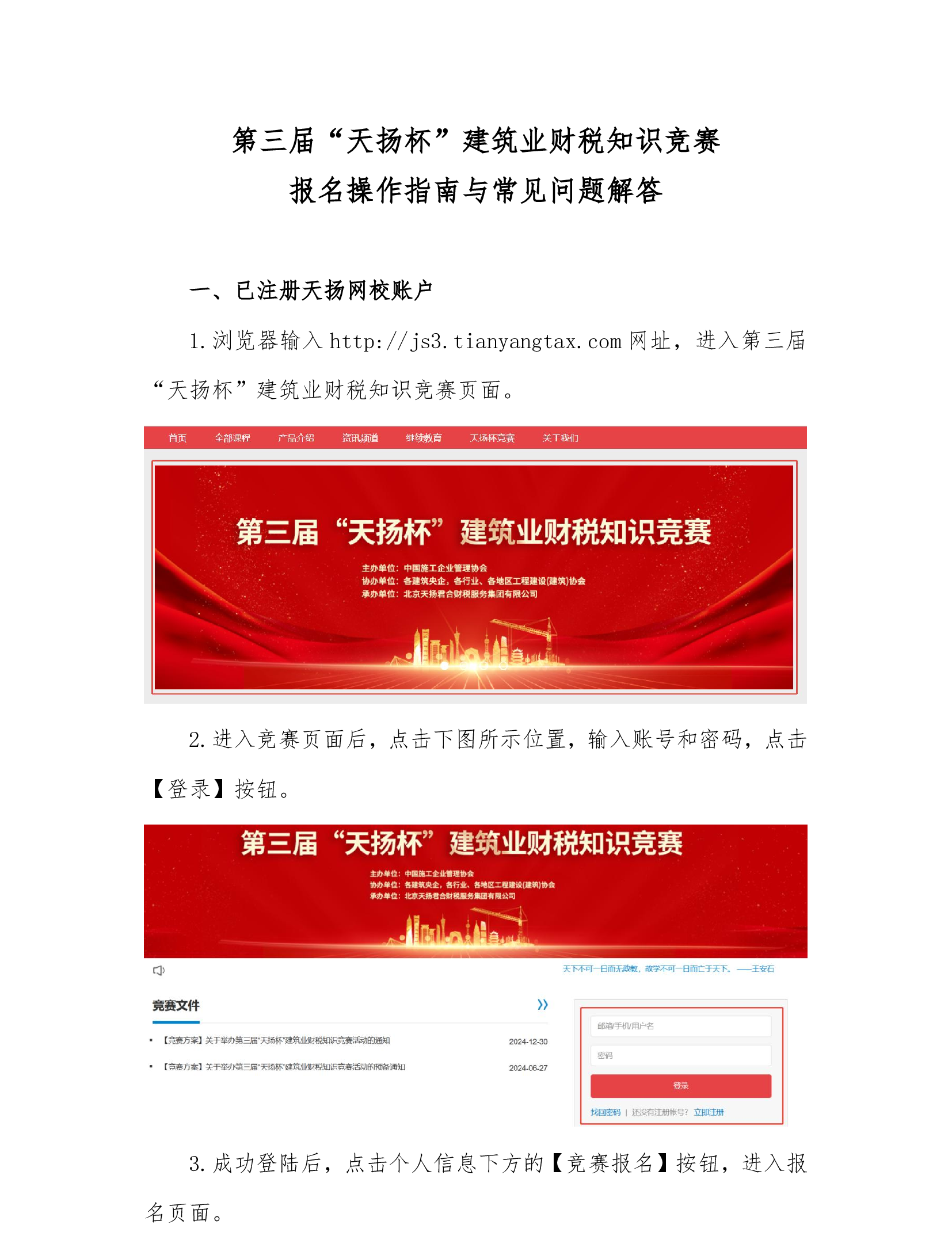 第三届“天扬杯”建筑业财税知识竞赛 报名操作指南与常见问题解答