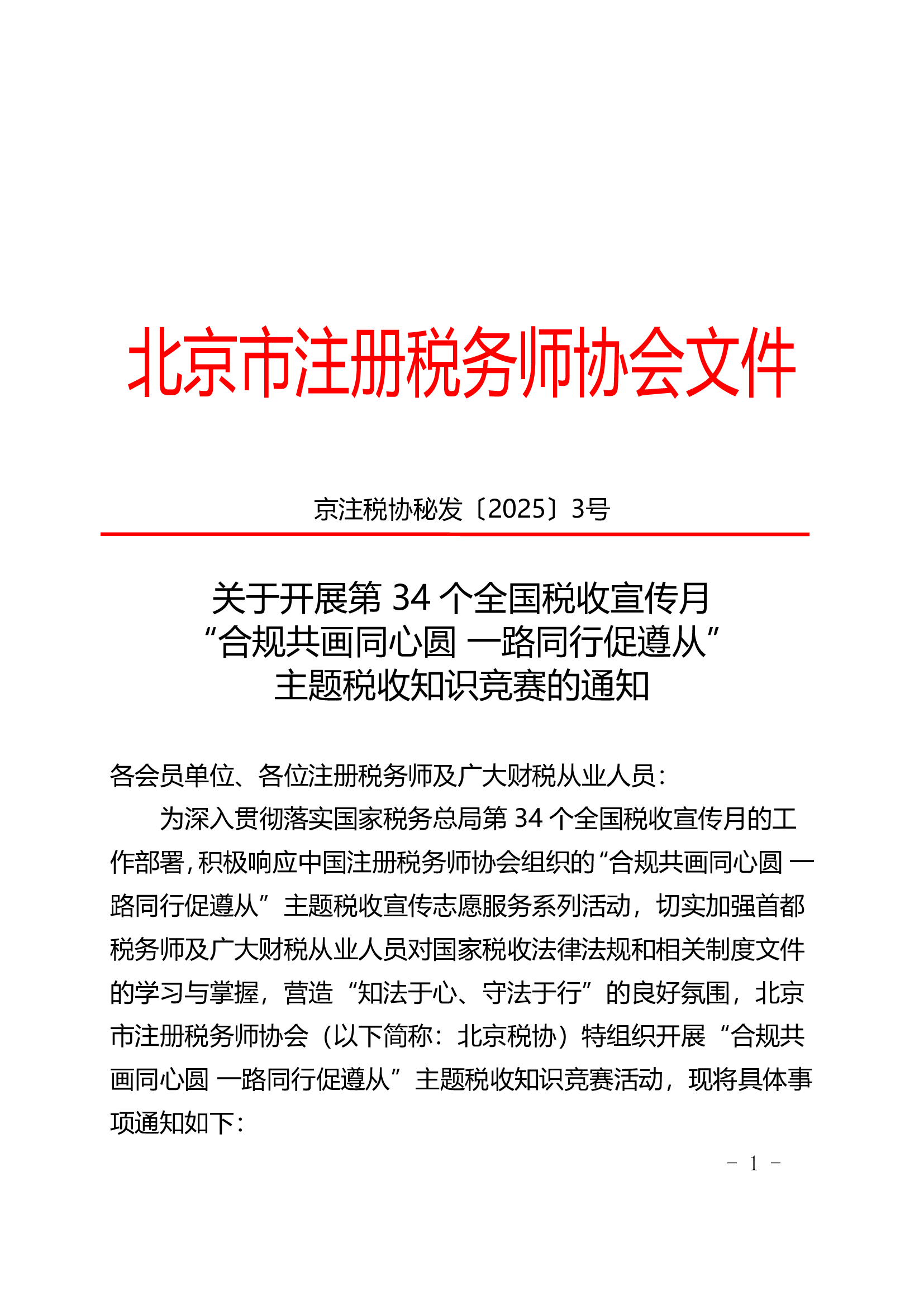 关于开展第34个全国税收宣传月“合规共画同心圆 一路同行促遵从”主题税收知识竞赛的通知