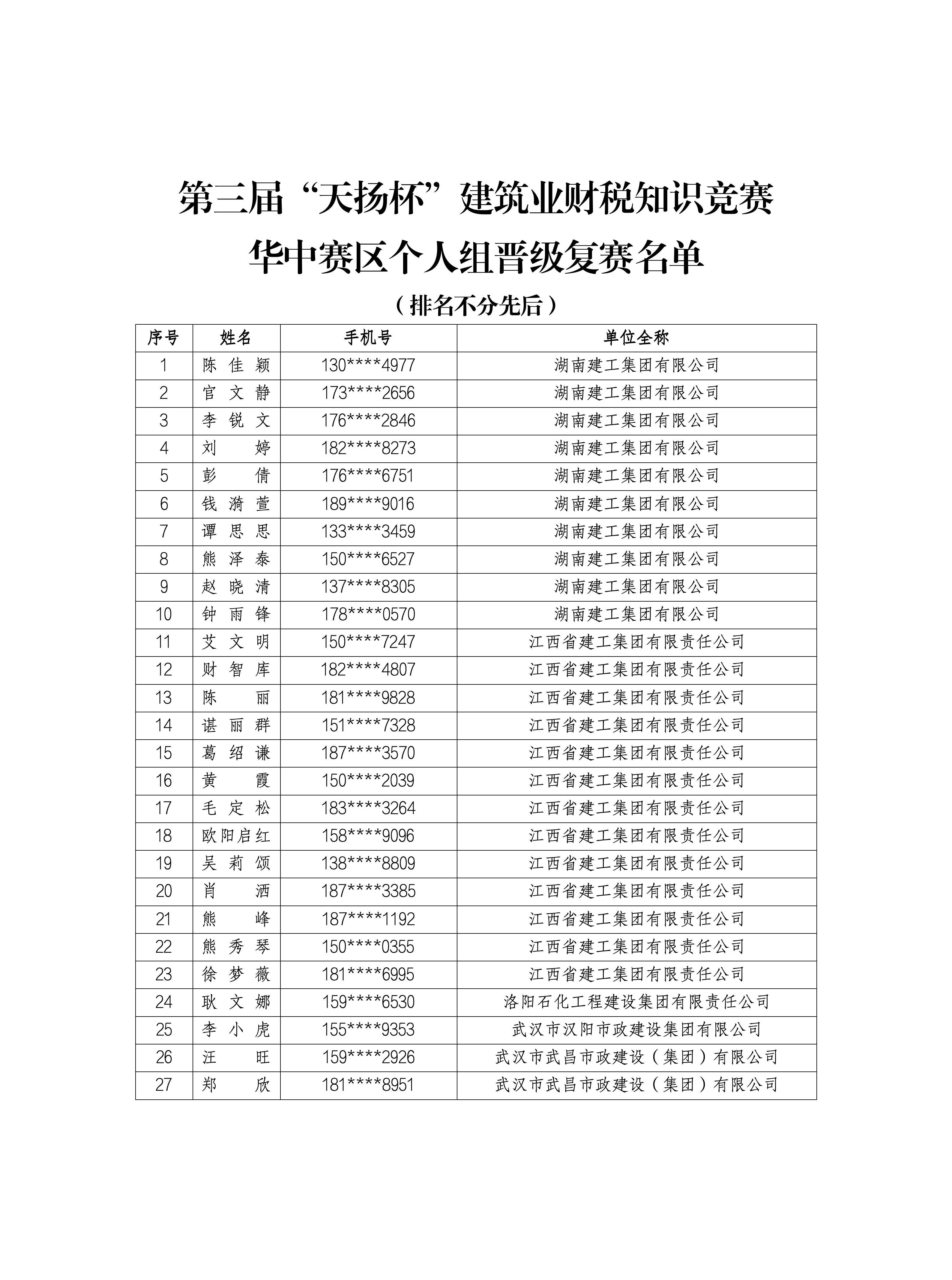 2. 第三届“天扬杯”建筑业财税知识竞赛晋级复赛名单