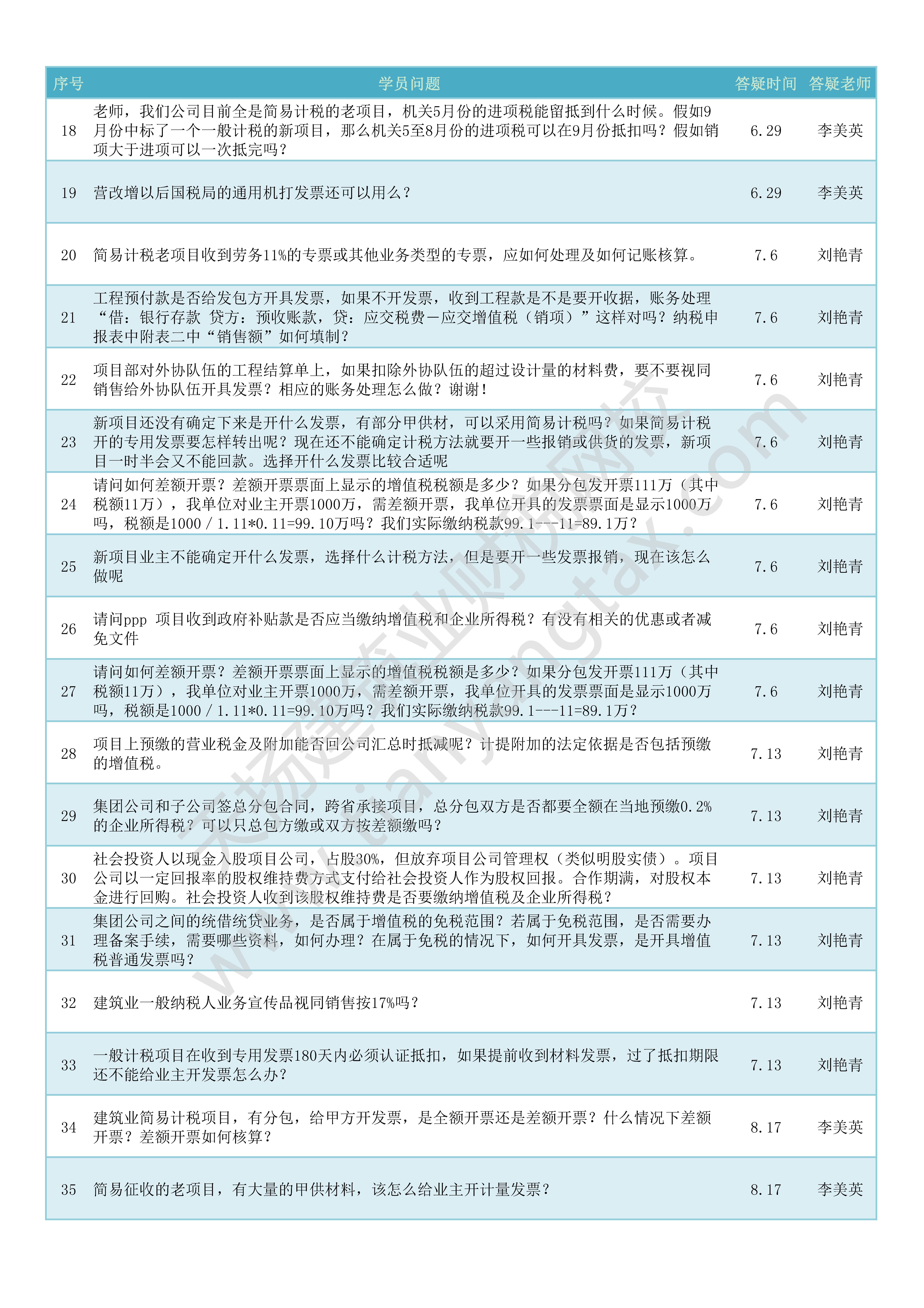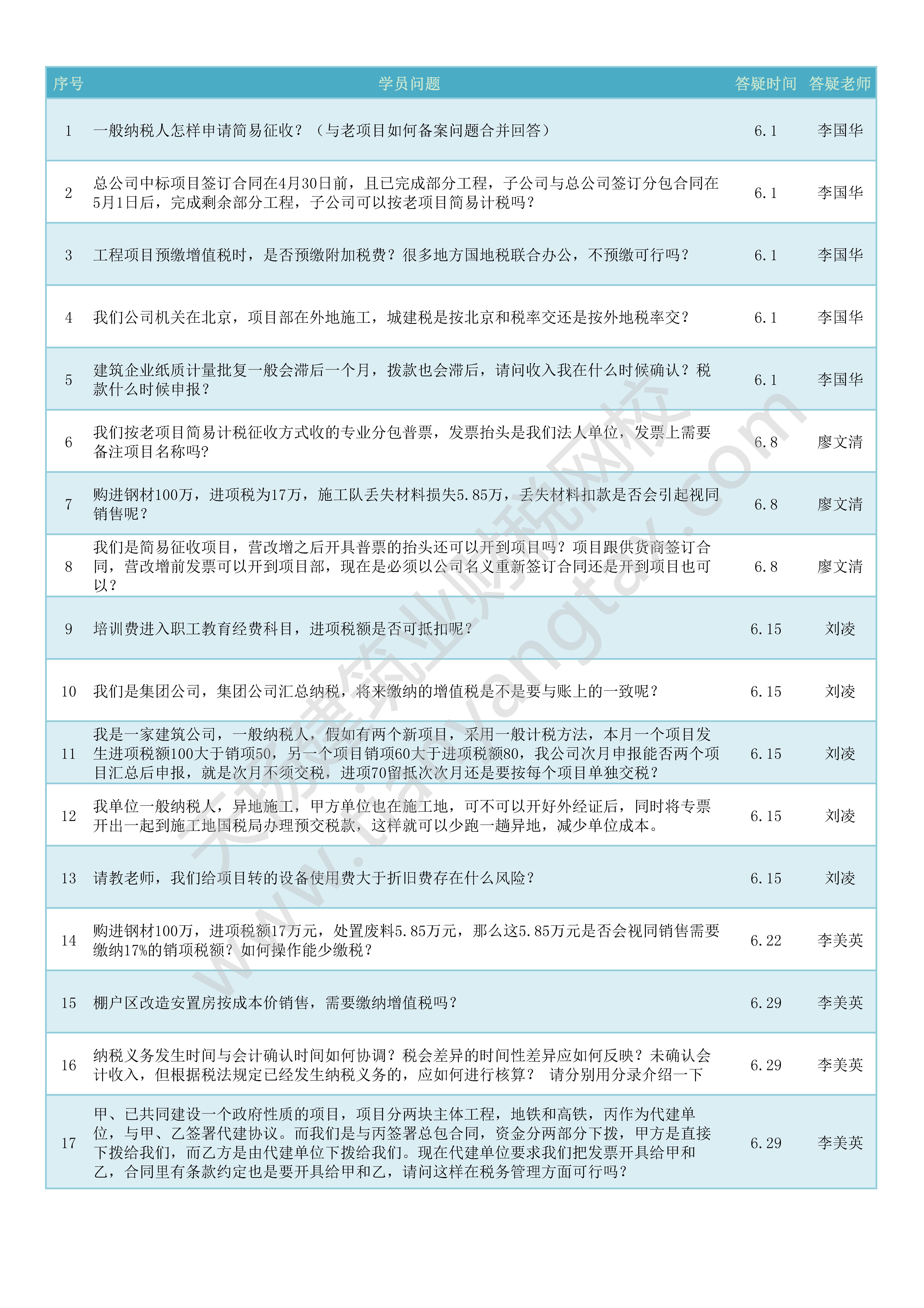【5个月时间,17节微课,100个学员问题】 天扬想对您说: 简单的事情重复做,你就是专家。 重复的事情用心做,你就是赢家。 6月1日以来,天扬微课老师在答疑环节共回答了学员的100个问题啦! 今天将我们的共同杰作(问题库)回馈给大家,信任、陪伴、鼓励,天扬有您会更完美~ 天扬建筑业财税网校:一切为了学员!