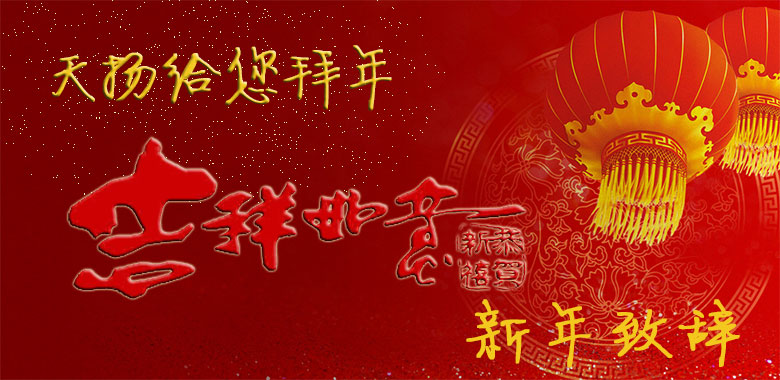 崭新的2015年已经到来,时值辞旧迎新之际,天扬人真诚的问候大家,向每一位支持天扬发展的新老客户、各级领导和社会各界表示衷心感谢,送上天扬新春的祝福!