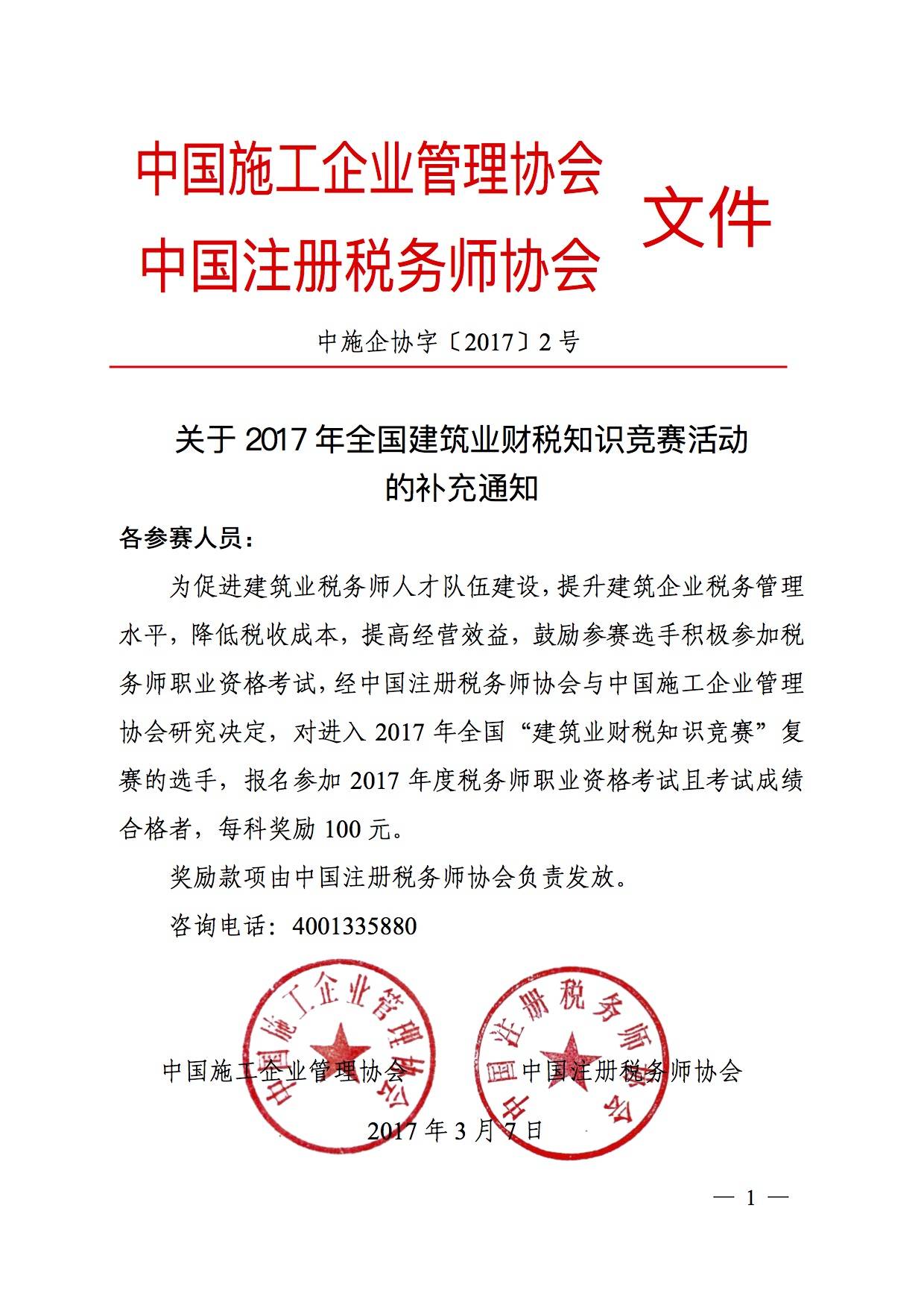 关于2017年全国建筑业财税知识竞赛活动的补充通知