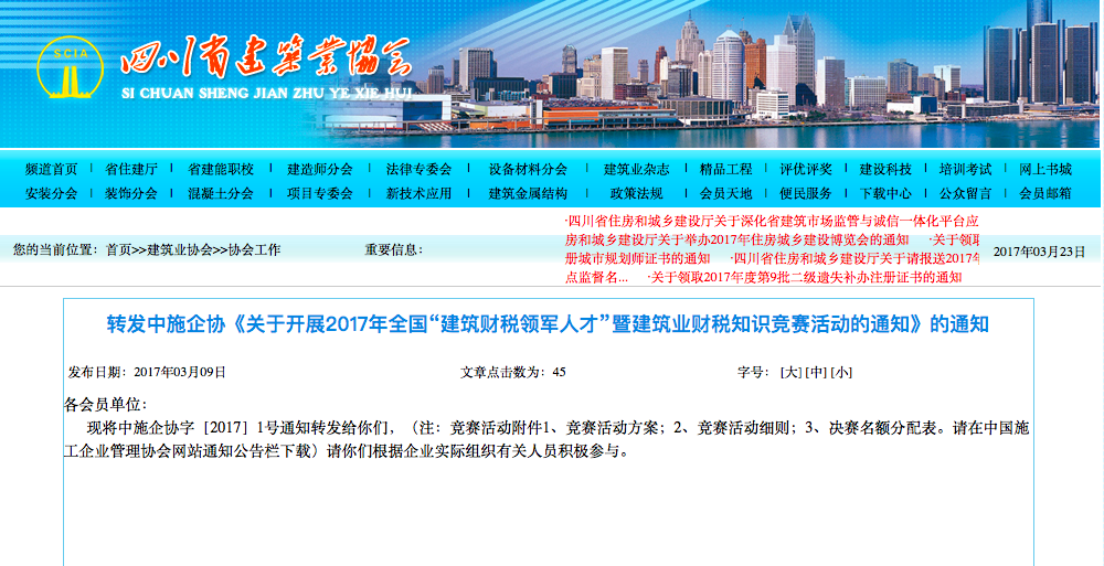 【四川省建筑业协会】关于开展2017年全国“建筑财税领军人才” 暨建筑业财税知识竞赛活动的通知