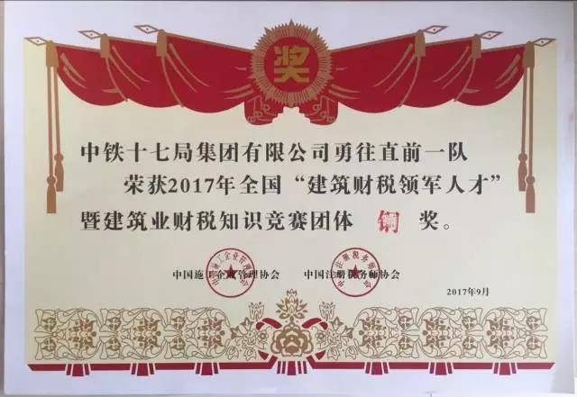 通过此次竞赛,中铁十七局集团脱颖而出一批优秀的财税人才,他们不断挑战自我,以坚持不懈、永不放弃的实际行动筑起企业快速发展的坚定基础;他们将在企业财税岗位上发挥骨干和示范引领作用,为提升企业财税政策执行水平,提高企业内生效率和促进企业加强精细化管理发挥重要作用,助力集团公司冲刺“千亿级”目标。
