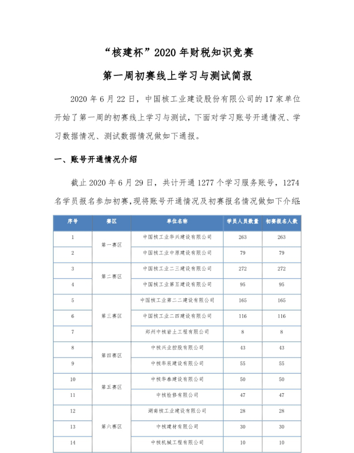 “核建杯”2020年财税知识竞赛 第一周初赛线上学习与测试简报