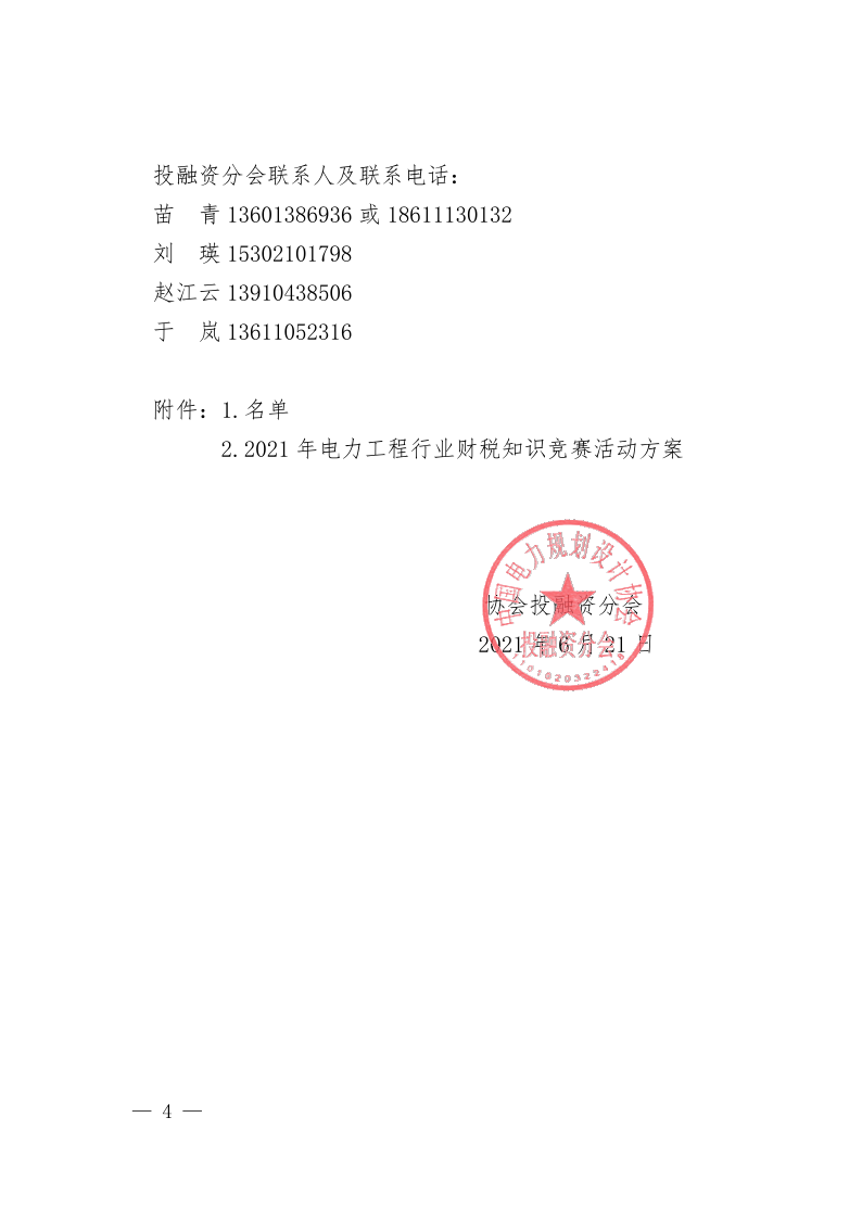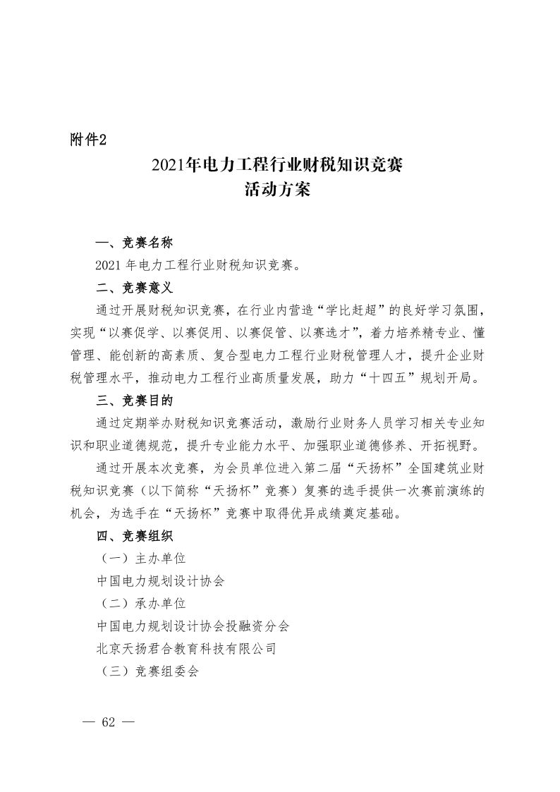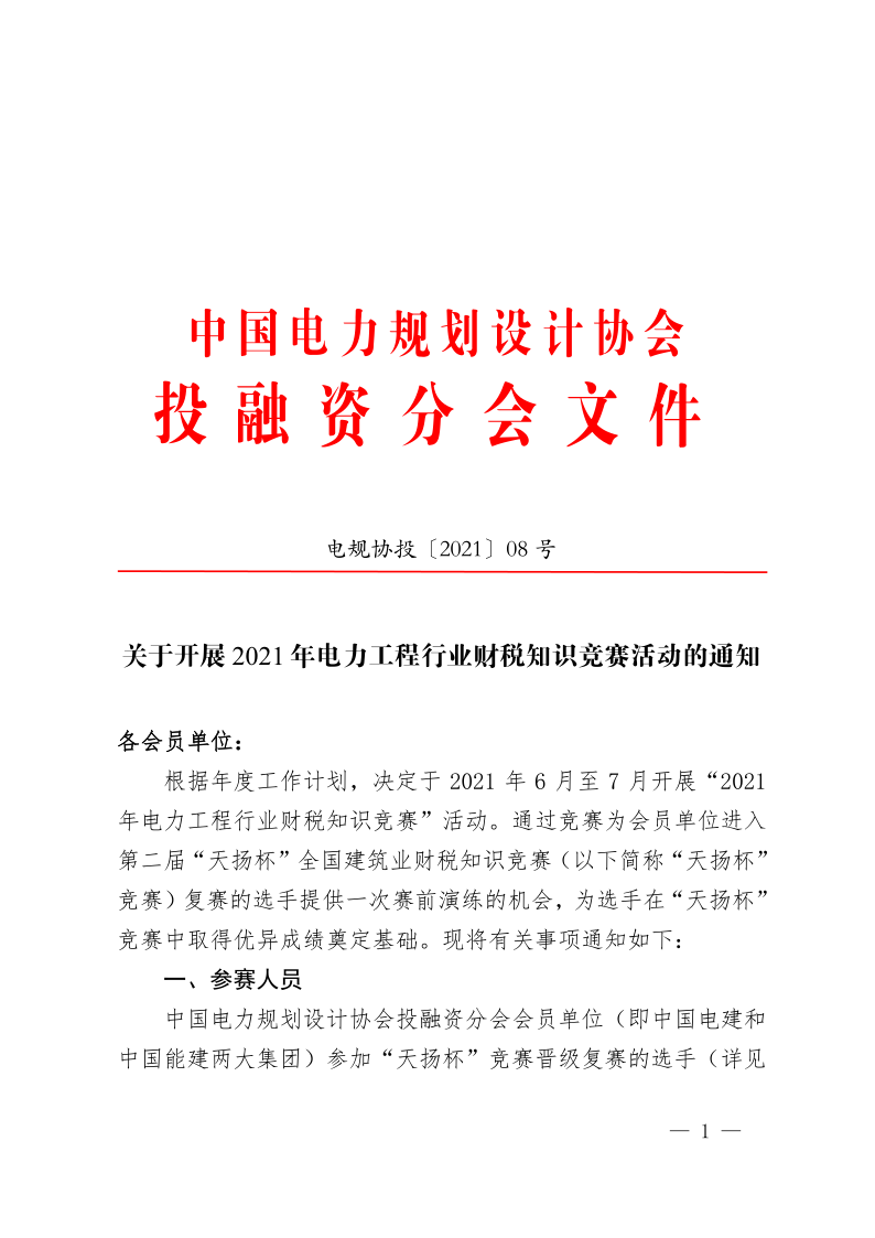 关于开展2021年电力工程行业财税知识竞赛活动的通知(电规协投【2021】08号)
