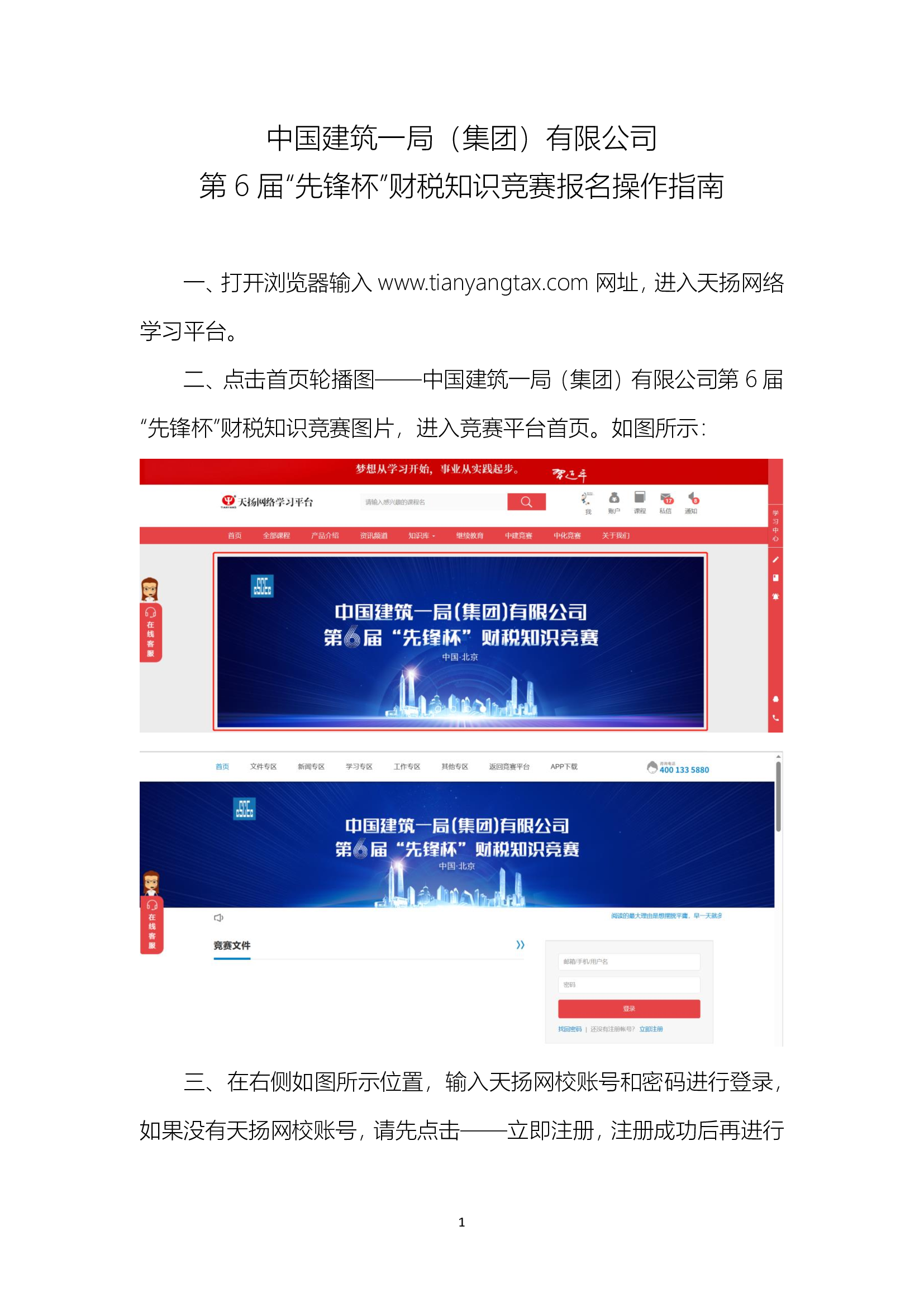中国建筑一局(集团)有限公司竞赛报名操作指南