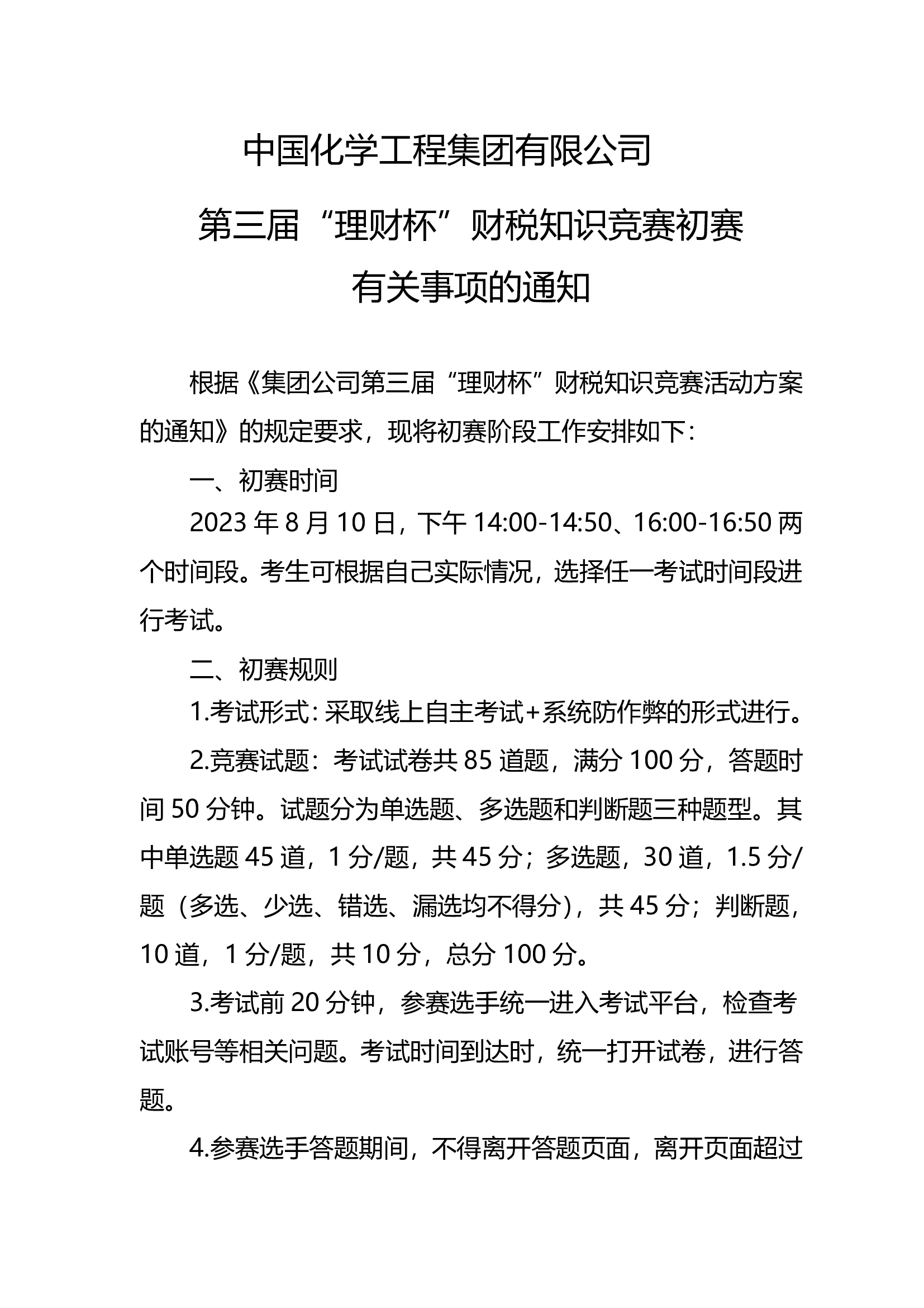 关于下发《集团公司第三届“理财杯”财税知识竞赛初赛有关事项的通知》