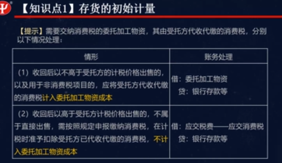 5.委托加工的应税消费品收回直接销售,受托方代收代缴消费税计入成本。