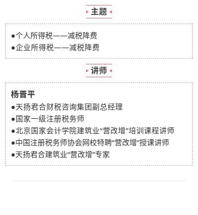 天扬君合财税咨询集团副总经理、国家一级注册税务师北京国家会计学院建筑业“营改增”培训课程讲师、中国注册税务师协会网校特聘“营改增”授课讲师、天扬君合建筑业“营改增”专家。